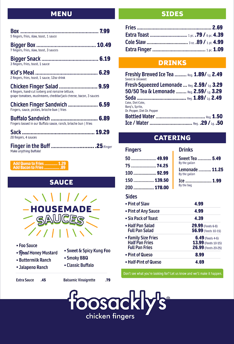 Welcome to Foosackly's - Foley, a delightful gem located at 2420 S McKenzie St, Foley, AL. If you’re craving crispy, flavorful chicken, this is the place to be. The menu features a variety of options, with their signature chicken fingers taking center stage, complemented by a range of zesty sauces, including the must-try Foosauce.